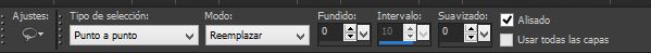 4. Herramientas / Selección a mano alzado / Punto a punto / Reemplazar / Fundido = 0 / Suavizado = 0 / Alisado = tildado.